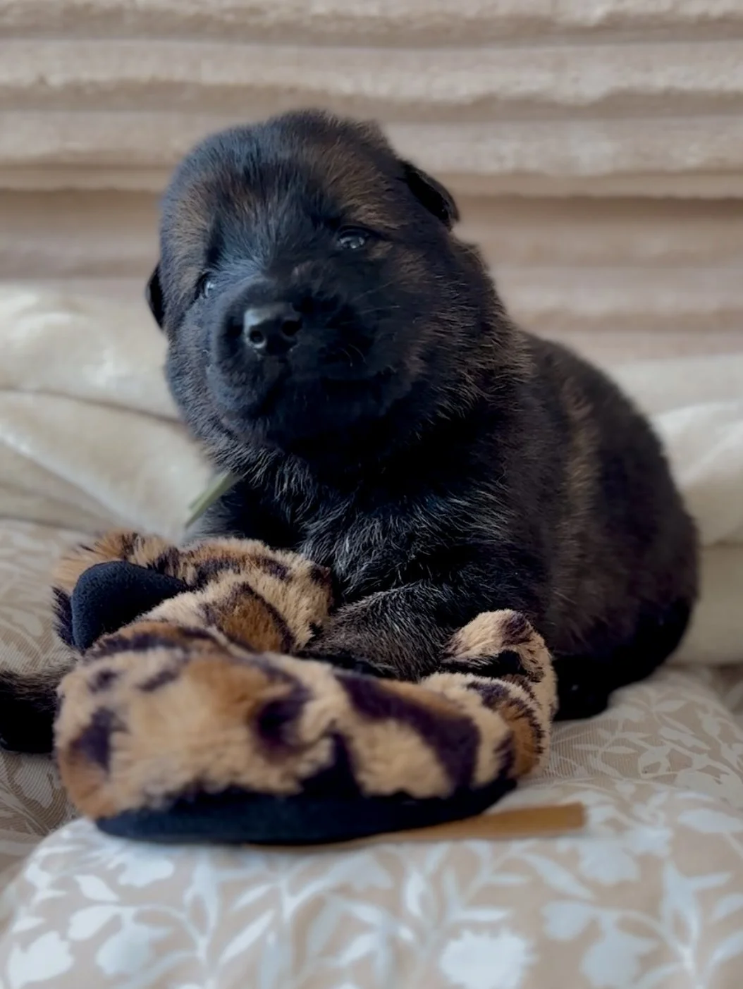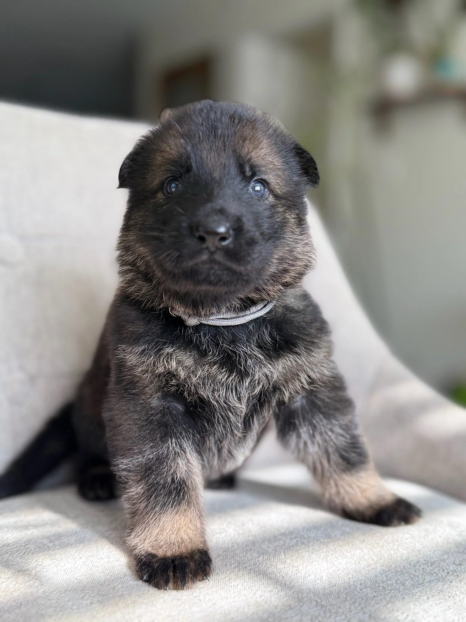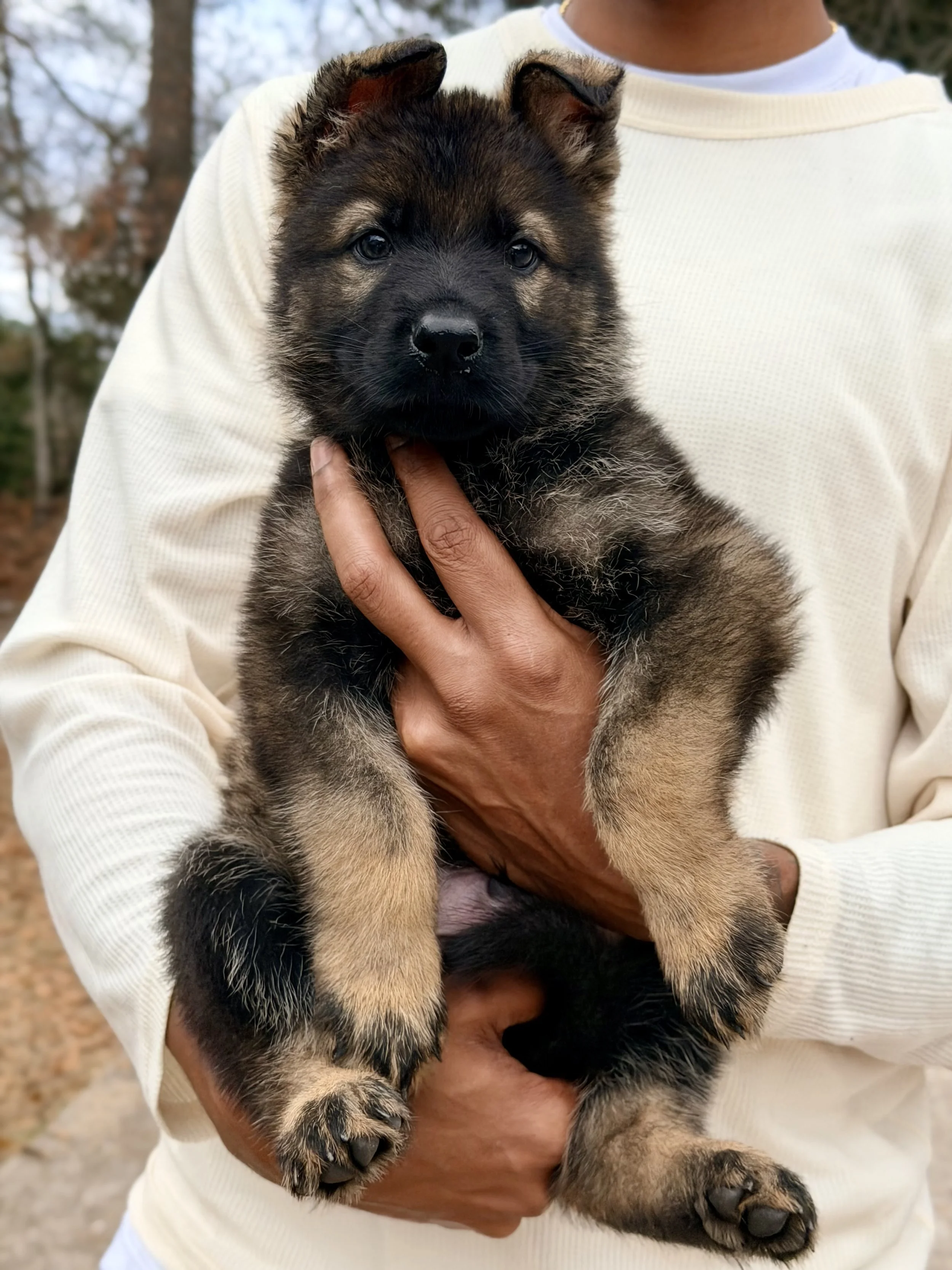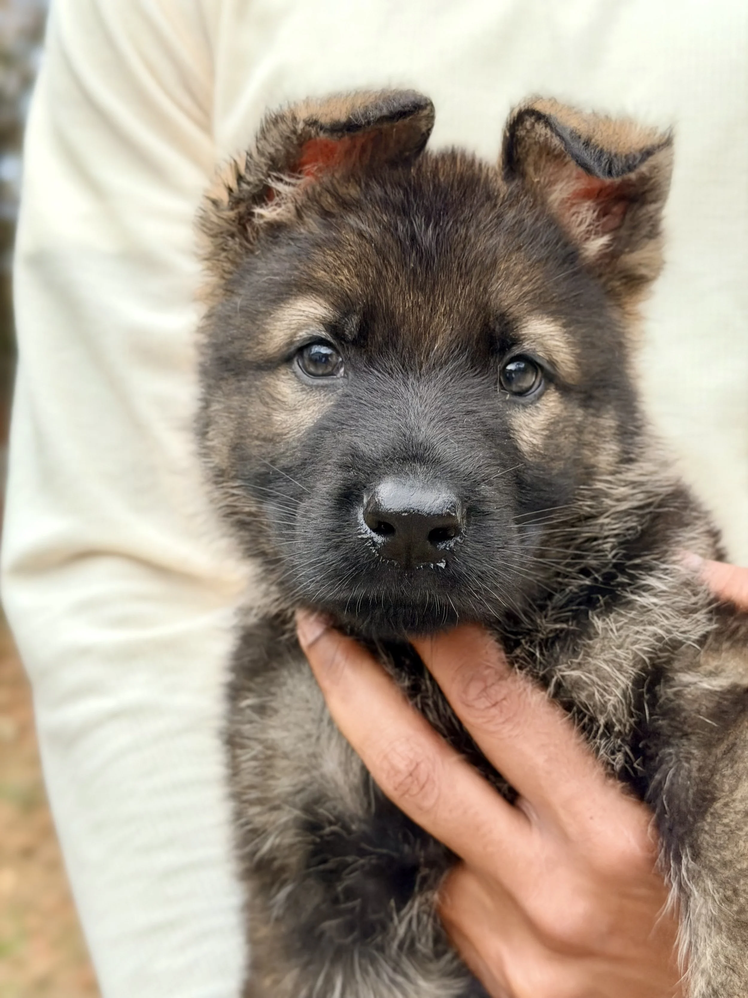 Storm is a confident, solid, agile boy of the group—future pack leader with energy through and through. With Lider’s strength and Misa’s loyal, even temperament, he’s already full of steady, self-assured charm.